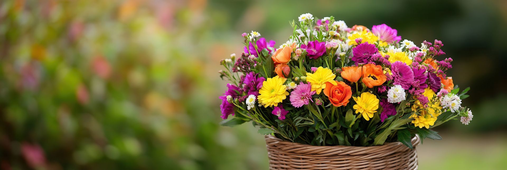 Prachtige grote bos bloemen. Let op: niet de kleuren en bloemen van de foto, maar kleuren en bloemen passend bij het seizoen.