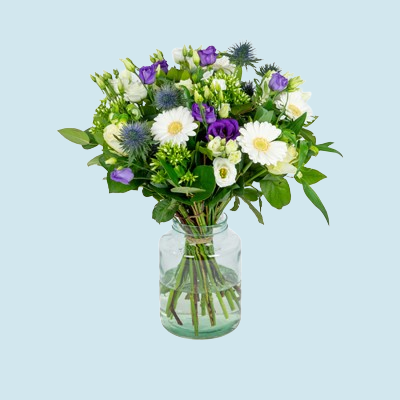 Eénmalig een grote seizoensbos bloemen ipv van midden.